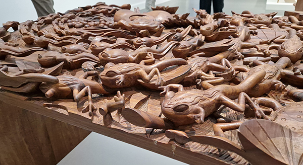 De portretten van Marlene Dumas zijn ook indrukwekkend, vrouwen die niet mooier gemaakt zijn. We hebben verschillende interpretaties van kunstenaars gezien die de maatschappij kritisch bevragen en ons voor veel vragen stelden maar ook veel bewon-dering opwekten. Bijvoorbeeld Forest Camouflage uit 2017 door Qiu Zhijie.