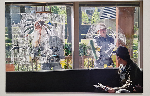 Ook bij alle volgende kunstwerken, waaronder een serie beschilderde lappen leer, was een toelichting van de rondleidster echt wel nodig. Of je moet minimaal goed het informatieboekje lezen dat bij deze tentoonstelling te verkrijgen is. Saai was deze tentoonstelling in ieder geval niet, het was een overrompelende kennismaking met aan alle kanten vragen oproepend werk van een kunstenares die met haar ideeën een eigen wereld weet te scheppen. Adly Lamers