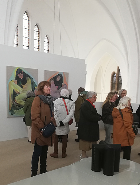 Met een vol bezette groep begonnen we zondag 12 januari met een rondleiding door de zeer spraakzame gids Caspar Senden. We zagen eerst een werk van Beatriz naar een klassiek werk van Velazquez, dat schilderij van haar leek meer op een abstract werk. Maar daarna een realistisch schilderij van een pasgetrouwd stel dat een bosje bloemen vast hield. Daar zat een gruwelijk verhaal achter, dit stel had na de huwelijksplechtigheid meteen zelfmoord gepleegd door van een brug te springen om de zondigheid in het huwelijk te ontlopen. De man was streng gelovig. Ik keek naar de vrouw en dacht, waar ben je toch in mee gegaan meisje…